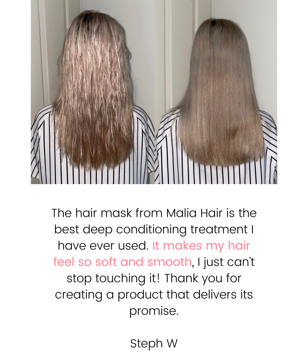 Full of natural and nurturing ingredients, Malia is the next step to bring you closer to your hair goals. All our ingredients contain healing and repairing properties which penetrate deeply to lock in moisture, detangle knots and tame frizz, resulting in the freshest, softest and silkiest hair.