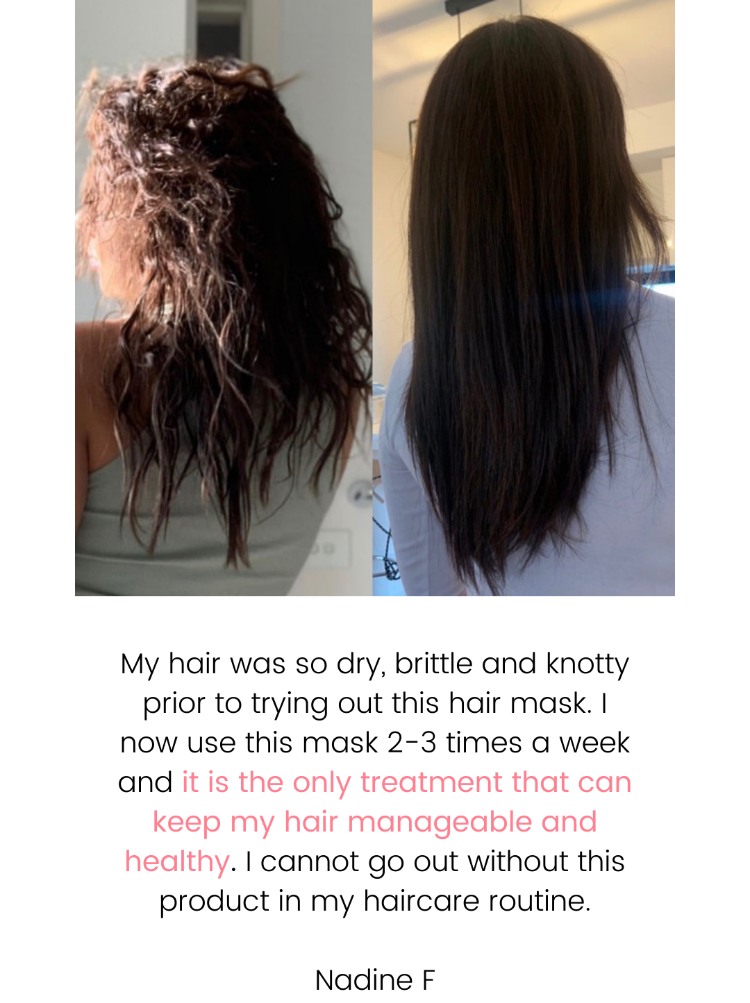 Our formulas are full of natural and nurturing ingredients with repairing properties to help you reach your hair goals faster. Our products transform fragile, lifeless and damaged hair into healthy looking hair with body, bounce and shine. Your hair will love you for it