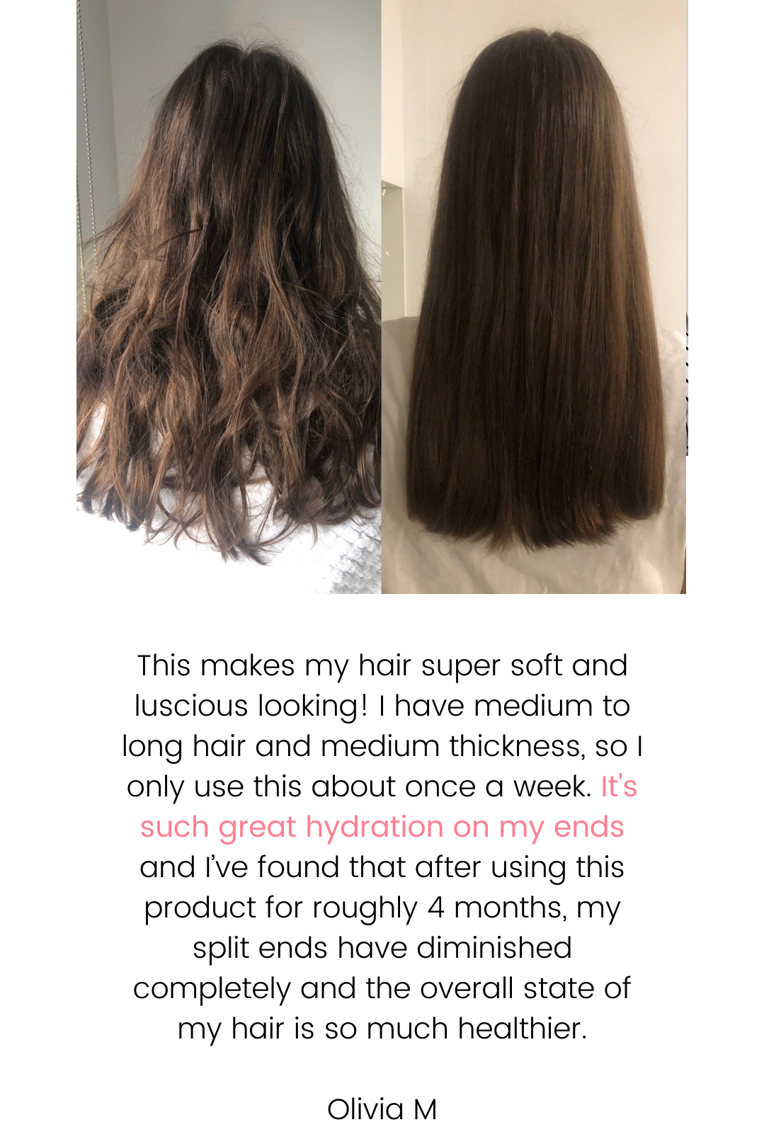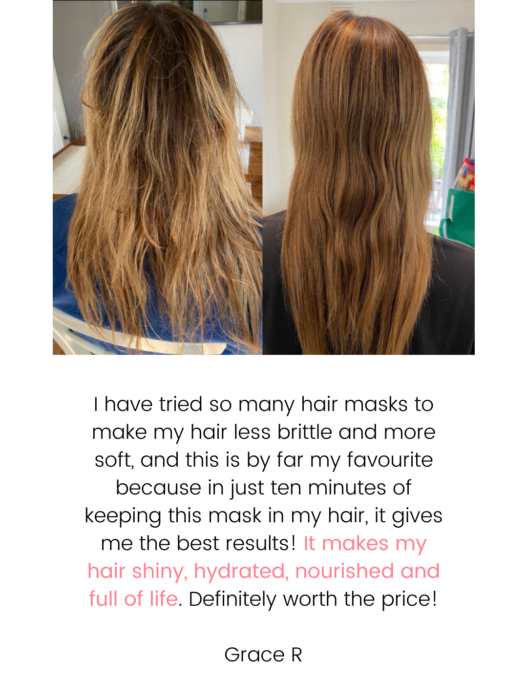 Hydration is vital for achieving healthy hair. It creates an optimal environment to repair dry, brittle and damaged hair from within. Adequate hydration helps to keep the hair shafts moisturised, reducing frizz, dryness and breakage.
