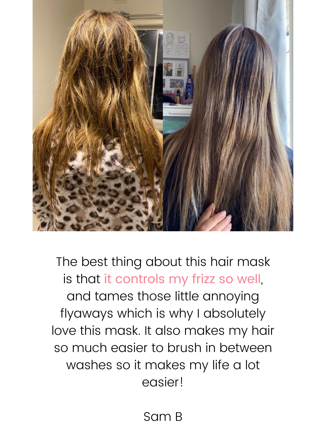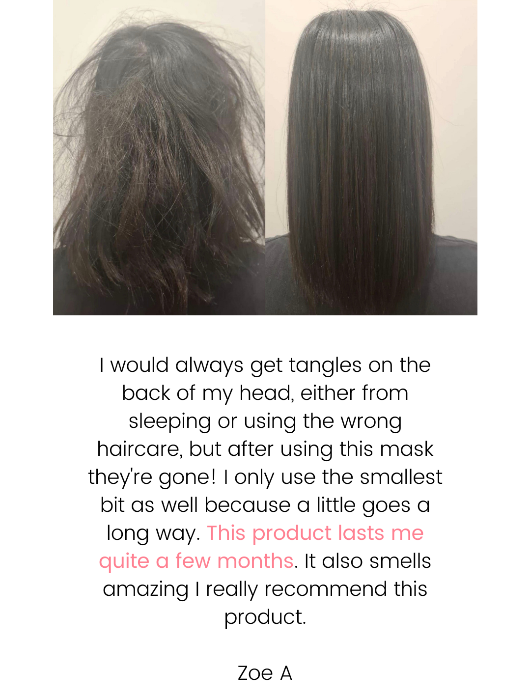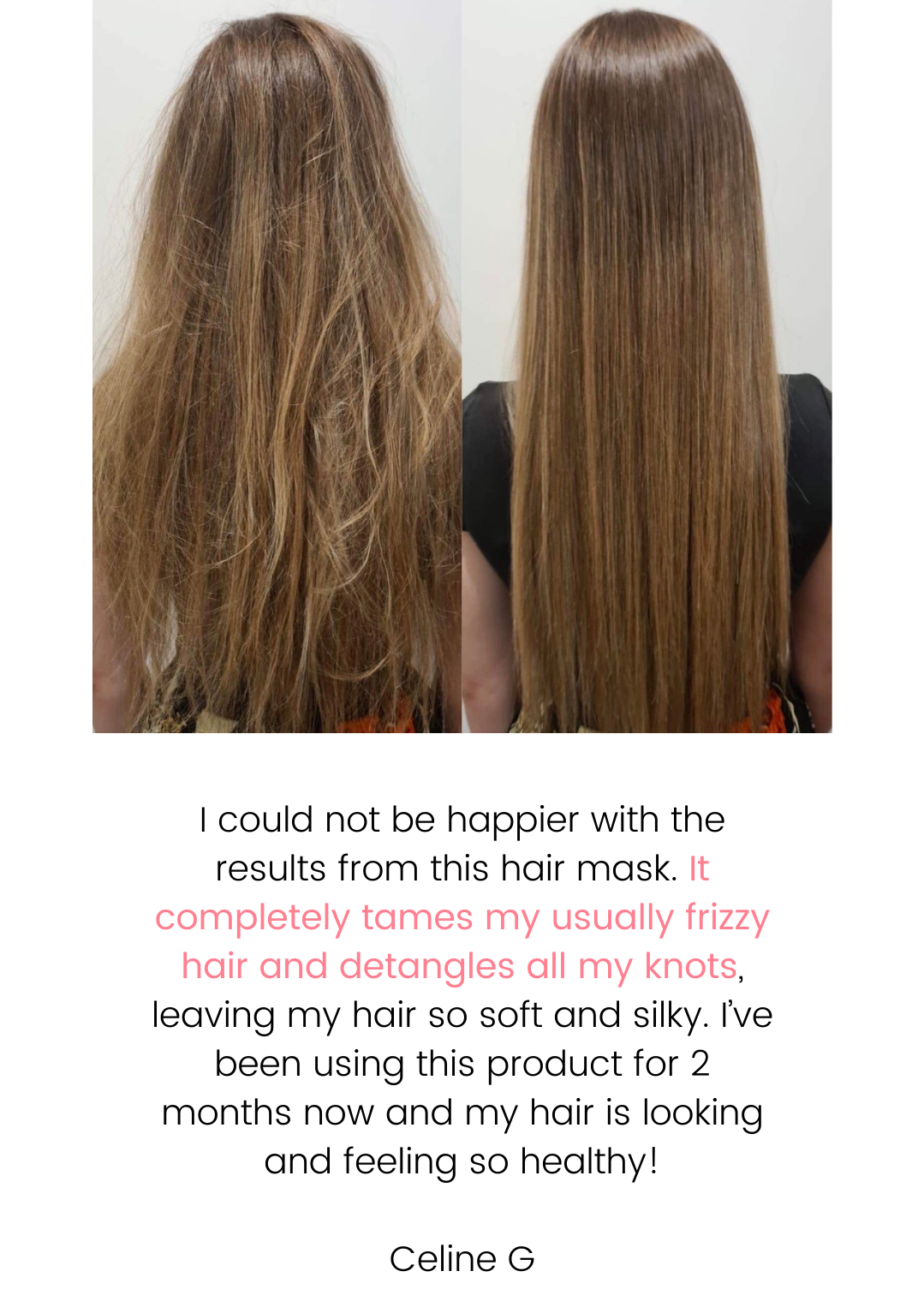 Frizz and tangles can make hair difficult to style and maintain, often leading to breakage and unnecessary damage. Keeping hair smooth and knot-free requires a balance of nourishment and moisture to strengthen strands, reduce static, and enhance overall manageability. By deeply conditioning and sealing the hair cuticle, frizz is minimised, and knots glide out easily, leaving hair soft and sleek.