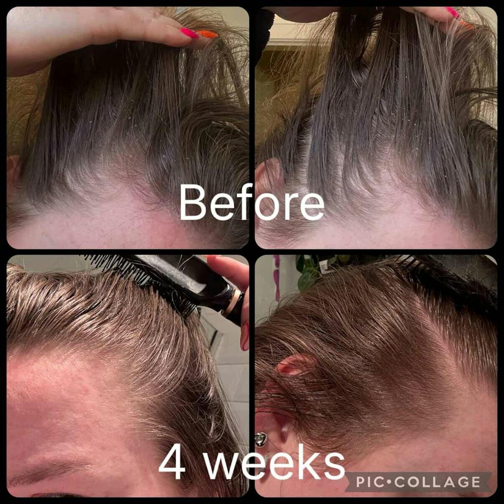 Hi! I thought I’d send you guys some feedback of my results of your bundle! I got the bundle as a gift for my birthday in July, as my hair was falling out due to postpartum and within 1 month the result are insane! I’ve used the peppermint growth serum 4 times and I wash my hair 1 once a week and these are my result!! I’m absolutely gob smacked! Thank you thank you thank you!!!